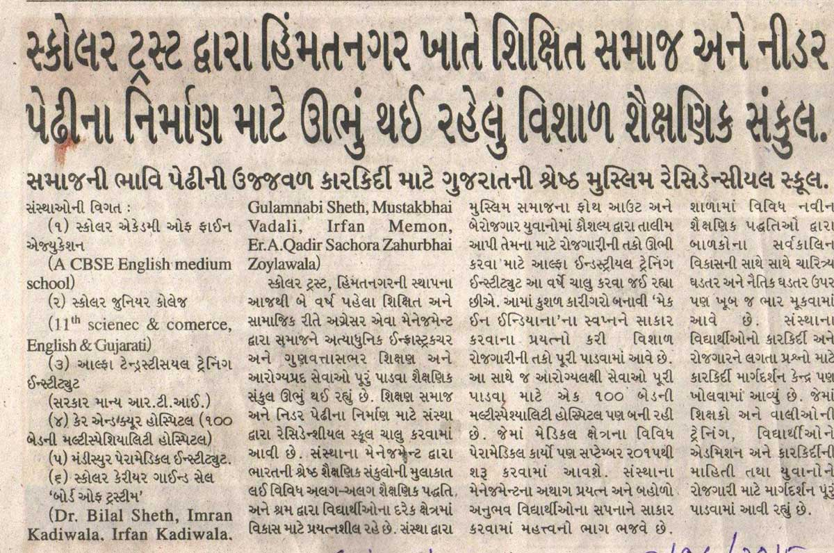 Std. 1st to 8th (English Medium), Std. 6th to 8th (Guj. Medium), Scholar Hifz Class, Scholar Dip. Alimiyat Course for girls